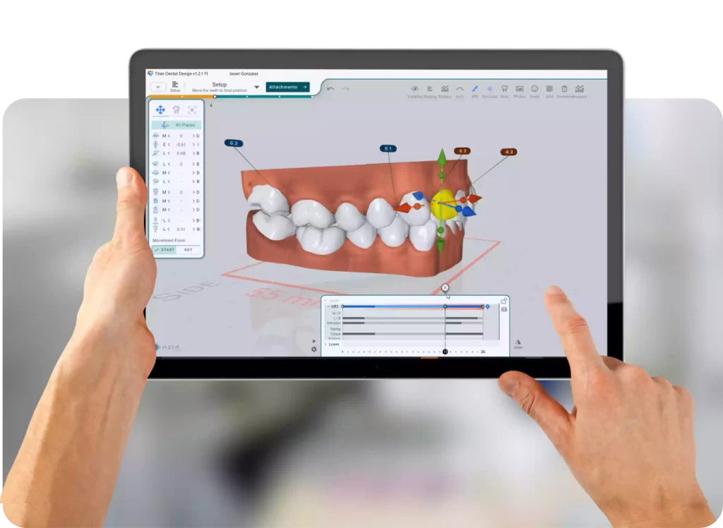 Interaktív platformunk, a Titan Dental Design, lehetővé teszi, hogy élőben tekintse meg és módosítsa a kezelési tervet,